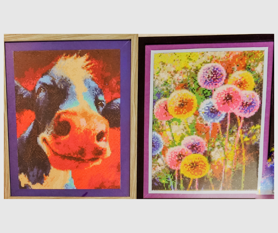 For Karen, that creative outlet is creating vivid shimmering works of art using a technique called diamond drill painting or diamond painting. The “diamonds” are tiny resin rhinestones applied one at a time.