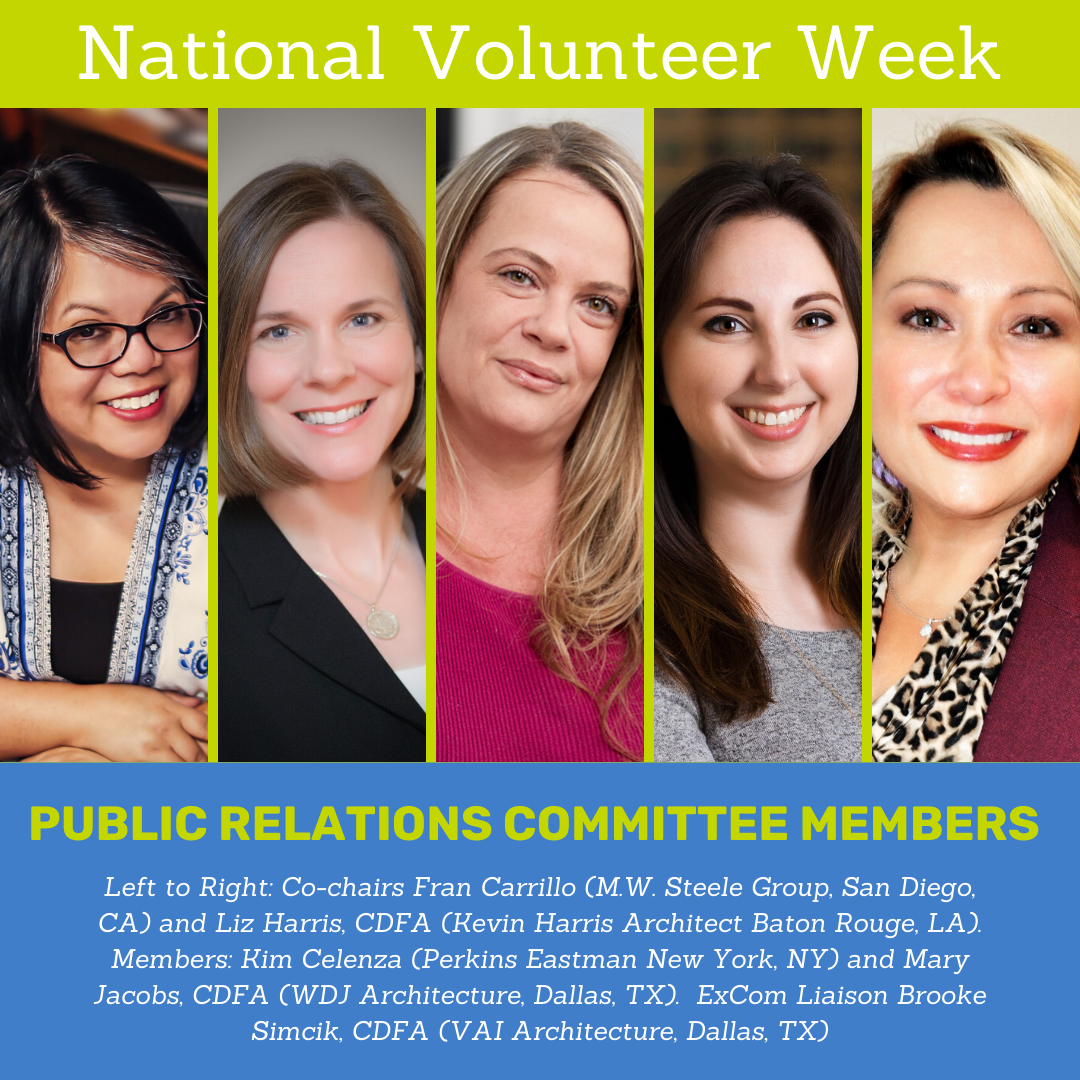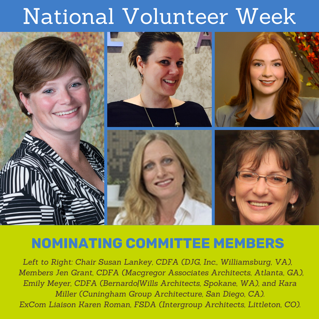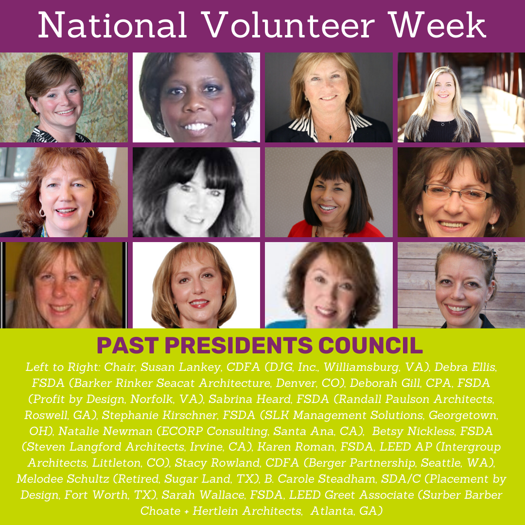 It's National Volunteer Week. We have been featuring our volunteers on our social media pages this week and wanted to give them a shout out here too! Thanks you all for what you do to help SDA share the great news about education and best practices in A/E/C operations each and every day. If you would like to serve on a national committee, contact SDA Headquarters and we will get you started!