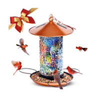 Ottsuls Solar Bird Feeder for outdoor hanging, luxury mosaic glass metal vintage lantern birdfeeder.