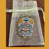 Sugar skull pendant made with repurposed china set in sterling silver.